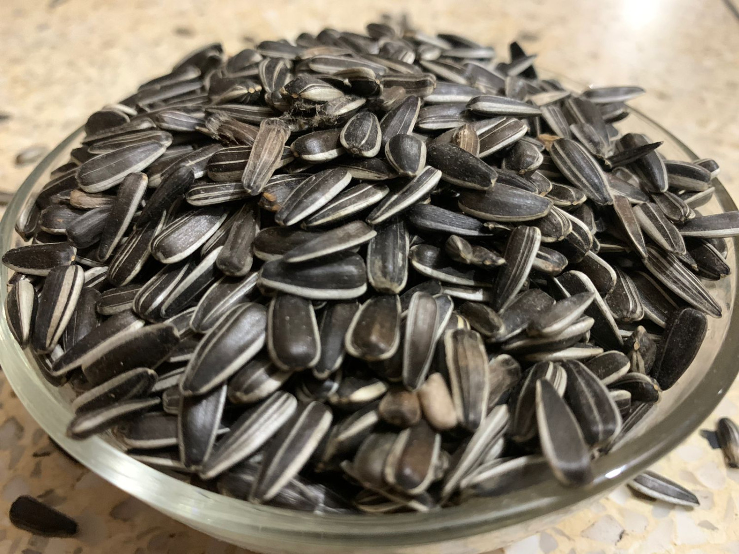 Sunflower seeds are an ideal snack for many birds. There are two types of commercial sunflower seeds. Oil seed (known as black-oil sunflower seed to backyard birders) is small, black and processed for sunflower oil.